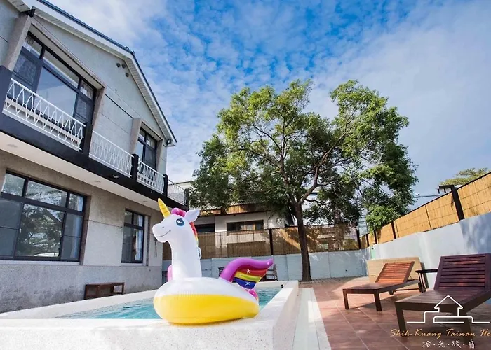 The 9-room 拾光旅宿-安北ㄧ館 Villa Tainan provides guests with parking and Wi-Fi in the Old Town district. Set only a 5-minute stroll from Anping Old Fort, this homestay with a sunny patio overlooks the pool.